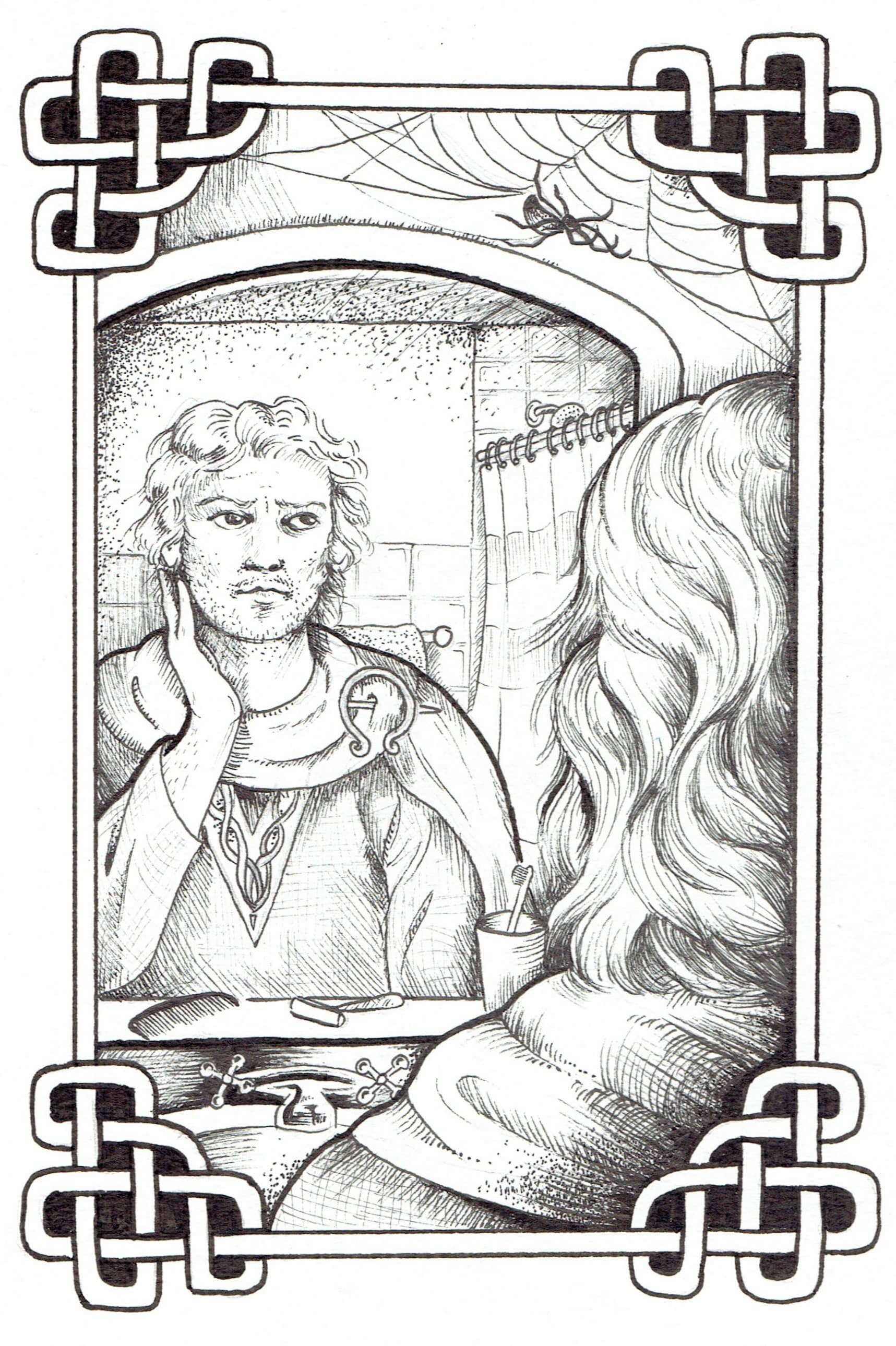 Cuchulainn had plans to grow a magnificent beard, but after twenty days he only had slight sideburns and a goatee. He scowled at the mirror, hating his youth. No one took him seriously as a warrior until he broke their bones. He wanted to look striking. Maybe people would be more terrified if he had a brutal scar on his face. Unfortunately for that he would need to lose a fight or disfigure himself.